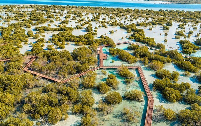 • Explore the stunning Jubail Mangrove Park, a leisure and nature destination in Abu Dhabi.