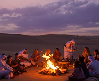 Start with a shared ride to an authentic Desert Camp for your Evening Desert Safari in Abu Dhabi. Experience dune driving, sandboarding, camel riding, traditional performances, a sumptuous Arabian dinner and a whole lot more.